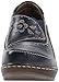 L'Artiste Style: SPIKEY French inspired, beautiful hand-painted premium leather clog featuring floral laser etching and cutout design, tonal stitchwork, and an adjustable hook and loop instep strap with an antiqued brushed metal ornament all on a cork and latex-wrapped, comfort wedge with a platform.