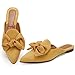 SLIP ON FLATS YELLOW womens mules: With pointed toe,the yellow mules for women flats fit great.The upper part of the slide that cover your foot is big enough to fit your wide feet.It's easy to keep them on and won't slip off easier or are stiff and pinch your feet when you're walking.The womens mules're prefect if you don't want show toes.The backless womens mules flats keeps your ankle comfortable,without ankle swelling,easy on and off. Perfect for office work, business,casual,Christmas party.
