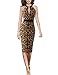 Style: Halter Neckline with Pleats, Keyhole Front with Metal Hardware, Leopard Print, Sleeveless, A Concealed Back Zipper, Back Slit for easy walking.