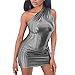 【Unique Feature】This Sparkly Dress for Women Features Sequin, One Shoulder, Stretchy, Sleeveless, Hidden Zip(Left Side), Wrap Hem, Ruched(Right Side), Above the Knee Length, Bodycon.