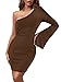 Features: Ribbed long sleeve dress for women, one shoulder bodycon cocktail dress, solid color basic casual dresses, knee length dress, summer dress for women, womens elegant pencil short mini dress, elegant dress, tight fitted dress, womens summer fashion 2023.