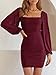 Features: Slim fit, Mesh Ruched, Square Neck, bishop Sleeve,hip skirt fitted bodycon short dress.
