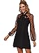 Design: Contrast lace, long lantern sleeve, bishop sleeve, high neck, stand collar, high waist, solid short dress for women