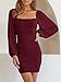 Delicate Design:Bodycon Mini Dresses for Women Shows a Female Excellent Curvy Figure With The Close-Fitting And Mid-Thigh Length Design.Classic Wide Square-Neck Design Reveals the Collarbone Of The Neck,Which Has a Good Slimming Effect.With a Sweet Slightly Transparent Lantern Long Sleeve Design,this Bodycon Dresses for Women is Full Of Fashion-Forward Vibes.