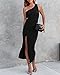 Wedding Guest Dresses For Women / Trendy Slim Fit Long Dresses / Sexy Sleeveless Cocktail Dresses / Soft And Lightweight Fabric / Ribbed Knit / Not See Through / Great Stretchy / Sheath Fit / One Shoulder Design / Hollow Out At Waist / Side Split / Midi Length / For Spring, Summer, Fall / Size: S=US 4-6,M=US 8-10,L=US 12-14,XL=US 16-18