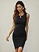 Features: unique back cutout design, sleeveless, crew neck, above knee length, ribbed tank top dress, ruched bodycon dress, plain/solid color, stretchy mini dress, casual short dress, slim fit, elegant chic style