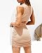 Features:round neck,sleeveless tank dress,side shirring,stretchy,fitted ruched bodycon sheath dress,tulip shape irregular hem,above knee length,casual fashion style