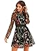 Feature: Round Neck, Long Sleeve, Short Mini Dress, Cocktail Dress, Embroidery, Contrast Mesh, Black dress, Floral Dress, Party Dress, Overlay Dress