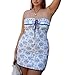Features: Women strapless floral printed tube dress, off shoulder, solid color, open back, low cut, lace up front, metal button, sexy party club dress, y2k 90s streetwear, above knee length, elegant pencil mini dress.