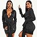 Features:Long sleeve,V Neck,Down Collar,Tie Front,Self Tie Knot,Bodycon,Button,Mini Length Style,Slim Fit,Solid Color,Show Slim Shape,Deep V Neck Elegant Prom Dress,Sexy Club Mini Satin Dress