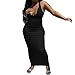 Women's elegant knit midi long dress: sleeveless, crewneck, twisted knot, ruched, front hollow out, solid / color block, high waist with belt, side split, slim fitting, above ankle length, racerback knitted tank dresses. Sexy high slit shows long legs, form fitting and flattering dress.