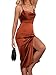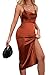 Style Features: The wedding guest dress has the characteristics of backless, adjustable strap, side split, thigh wrap hem, cowl neck, solid color, ruched and bodycon. The adjustable strap bodycon dress is designed to create a fashionable and sexy perfect figure. The women's novelty dresses can make you look slim and set your figure curve better.