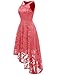 Deft design: high-low hemline, halter-neck, lace floral, back zipper.