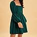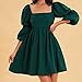 Features: Square Neck, Puff Long Sleeve with Elastic Cuffs(Elastic Band in the Middle of Sleeves), Smocked Back, High Waist, Invisible Zipper on Back, Mini Length.