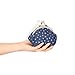 This cute coin purse contains a gold or silver frame with double clasp closure; two compartments for storing goods. Inside the bag is fully lined with patterned polyester.