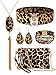 Women Jewelry Set: leopard print patterns are stylish and charming, our leather dangle earrings can modify your face shape, the long necklace with tassel design can make your neck look slender, and the multilayer wrist cuff is also beautiful, which can easily create an exotic style for you