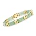 18kt yellow gold over sterling silver, green jade bracelet for women. 3/8" wide. 7.5" long. Box clasp provides security that blends seamlessly into the design. Includes jewelry presentation box and 30-day, 100% money-back guarantee.