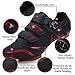 [Breathable & Convenient]: The light and breathable bike shoes for women men are designed with highly-breathable synthetic mesh upper, the ventilated mesh for better heat dissipation and air flow air flow to make your feet more comfortable. The convenient velcro design and adjustable buckle make you put on and take off quickly. The toe box is wider than most cycling shoes and fits normal and wide feet to avoid tight pressure on the blood vessels during the cycling.