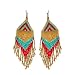 【SUITABLE SIZE&WEIGHT】If you do not like big beaded earrings, this mini beaded earrings may be the good choice for you. This native beaded fringe Earrings hang approximately 4.13 inches long and 0.98 inches wide. The weight of each earring is 0.12oz/3.5g. They are lightweight and designed to be comfortable to wear. Meanwhile, the beads are imported from Japan which make the color brighter and the weight lighter