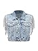 Sleeveless, collar, tassel, button down, pockets, glitter, crop denim jacket