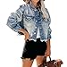 🍁Womens Cropped Buttoned Denim Jacket Retro Ripped Jean waistcoat Washed Frayed Classic Chest Flap Pockets/Basic Denim Jackets for Women Button up Washed Cropped Jean Jacket