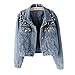 ♥Be fashion from get one denim jacket:A casual long sleeve pockets washed distressed sequins denim is going with basically everything and look cool at no matter what the occasion.Casual day time,shopping with your bestie or something to throw on over your gym kit,these denim jackets are exactly what your wardrobe has been calling out for.Please don't wash it in the washing machine