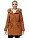 【Detachable Faux Fur trim】The faux fur trim of this women parka is soft and warm, you’ll feel superior warm when you put on faux fur lined hood .It’s also easy to detach and convenient to clean