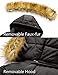Double Styles💞【Classic Hooded Style: Removable hooded with faux fur trim, excellent for colder winter days.】 The hooded with faux fur trim is easy to attach and detach, and the faux fur does not shed. Removing the hooded with faux fur trim is another style. Big and deep hood with beautiful color trim. High quality, smooth, soft,no allergic artificial fur, classic winter colors, complement the winter. Our artificial fur is connected to the hooded and can be removed from the clothes by a zipper.