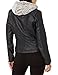 This edgy, warm sherpa-lined faux leather jacket for women is waist length and sits right above the waistband. The slim fit, faux sherpa lining, and elastic ribbed sleeve cuffs lock in heat. The removable sherpa hood gives you the versatility of an essential winter jacket or a stylish women's fall full coverag jacket.