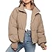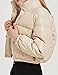 Cropped puffer jacket women, stand-up collar, long sleeve, single breast snap button front with invisible full zipper, elastic cuffs and hem, keeps you warm and cozy in the chilly weather