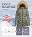 🌡Waterproof Warm Winter Coat:The ladies puffer jacket is made of high-density,wear-resistant,waterproof and windproof coated fabric.Fabric treated with a Durable Water-Repellent(DWR) finish helps keep you dry when inclement weather strikes.This fur hood parka with 3000mm/H2O waterproof index.This snow coat water-resistant sheds light snow and rain