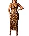 FEATURES - Dresses For Women / Boho Dresses For Women / Retro Aline Dresses For Women / Allover With Stylish Pattern: Leopard, Floral, Polka Dot, Color Block Graphic / A Keyhole Connect With The Halter Neckline / Backless / Sleeveless / Moderate Stretch Elastic Waistband / With Tie-Self Belt / Swing Ruffle Hem / Soft Fine-Knit Viscose Material / Lightweight And Breathable / For Spring Summer Fall / Size: S, M, L, XL
