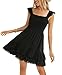 SPECIAL FEATURES: Sleeveless ruffled sleeve, square neck, shirred tie, double layer lace floral ruffle hem, a line swing dress style, above knee length, boho solid short dress.