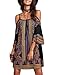 Feature: Boho, Cold Shoulder, Floral Tribal Print, 3/4 Sleeve, Spaghetti Strap, Tunic Dress