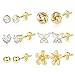 6 Pairs Small Gold Stud Earrings Set: Package concludes 6 pairs 14k gold plated stud earrings. Specifically, 3 pairs cubic zirconia stud earrings (0.2" round/ heart, 0.28" butterfly), one pair ball stud earrings (0.2"), one pair knot stud earrings (0.31"), one pair CZ stamen cinquefoil stud earrings (0.2"), with 12 pairs metal and silicon earring backs.