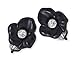 KENNETH JAY LANE-BLACK RESIN FLOWER WITH LEAF -CLIP EARRING, CZ ACCENT. WHITE OR BLACK