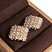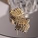 Large stand out golden rhinestone ear stud, features sparkly cubic zirconia with dainty gold ball beaded chain forming check waffle pattern, vintage retro and perfect for daily formal business outfit, and casual dating.