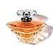 STRIKING CRYSTAL PYRAMID BOTTLE. The bottle is angled with rounded edges, representing the softness of the wearer. The juice is a golden peach, as radiant as the woman in love who wears it. The elegant bottle is topped with an iconic diamond-shaped cap