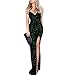 Sequin Long Dress Adjustable spaghetti strap,sleeveless,elegant empire wiast,sexy v-neckline Charming open back,invisible zipper for ease of wear,sexy high split show long legs