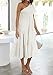 This unique casual off shoulder dress features one shoulder style, bubble short sleeve, elastic shirred bust, solid color, side slit at bottom, high waist with flowy a line tiered skirt, perfect below knee length.