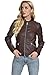Two in One: Brown leather jacket women with a removal knit hood and front panel with exposed zipper. Can be worn as a standing collar jacket.