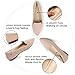 COMFORTABLE HEAL PADS NUDE FLATS FOR WOMEN: A nude flats for women with plenty of cushion on the inside of the back of the heel that is there to separate the edge of the high back that won't rips up the back part of your ankle from the skin and hurt you feet.Trary offer a pair of cushion pads to put on the inside back of the heel to completely resolve the sizing ( if you need). No rubbing, blister or pinching from nude flats. The nude flats for women dressy fit like a glove, comfy to walk.