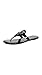 Patent finish, Thong strap with laser-cut logo, Lightly cushioned leather footbed, Flexible rubber sole, Smooth leather toe post for comfort