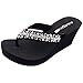 VERSATILE STYLE FOR EVERYDAY - Leather upper with sparkling sequins beads and rhinestones detail. 3 inches high heel makes the black flip flop sandals great with jeans dresses and shorts, also greath bikiniumum.