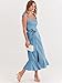 Features - Soft Satin Fabric,Shoulder Straps Tie, Solid Color, Sleeveless, Split Hem,Square Neck,Tie Waist Midi Dress for Women.