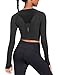 ➤Long sleeve workout shirts for women,mock neck stand collar,tag less design.Sleeve cuffs with thumbhole,wind proof and keep sleeves from shifting and wind proof.Ergonomic 4 needle flatlock stitches allow greater range of motion.