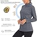 ➤Long sleeve workout shirts for women,mock neck stand collar,tag less design.Sleeve cuffs with thumbhole,wind proof and keep sleeves from shifting and wind proof.Ergonomic 4 needle flatlock stitches allow greater range of motion.