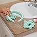 This towel headband for washing face measures 15 inches around and is made out of a flexible plastic inner core; Scrunchies for women measure 4.5 inches around; Mint facial spa headband for washing face best fits teens to adults