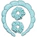 Unlike other face wash headband styles, this cotton terrycloth face washing headband includes two matching scrunchies that prevents water from running down your arms and can also be used to tie your hair back
