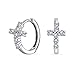 Christmas, or Easter these CZ cross donning, rhodium plated, modern huggie hoop earrings are 0.45in and a great gift for Christians of all denominations with pierced ears and faithful hearts.